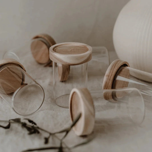 Eulenschnitt - Set di 6 Mini Barattoli in Vetro con Coperchio in Legno di Acacia