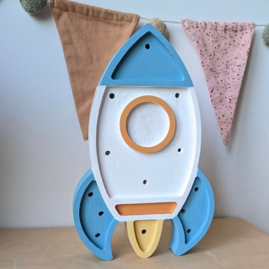 Lampada Elefantino azzurro in legno - Luce notturna artigianale