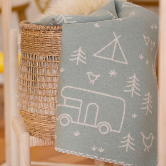 Fussenegger Kids - Coperta in flanella di cotone e viscosa 90x70 cm - Camping verde