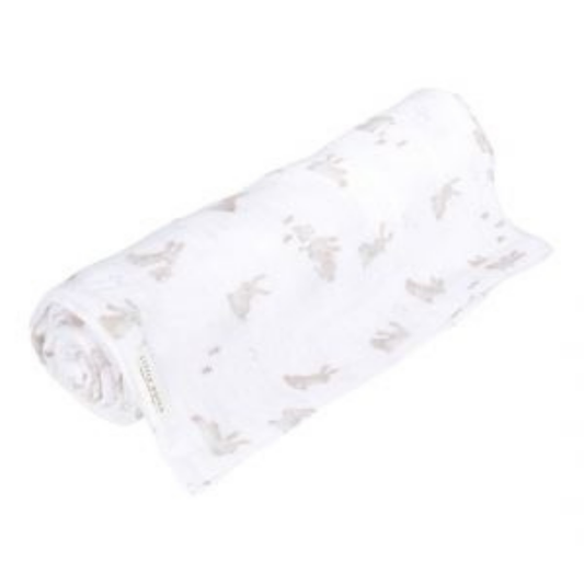 Little Dutch - Panno in Mussola Swaddle 120x120 cm - 100% Cotone Organico - Baby Bunny