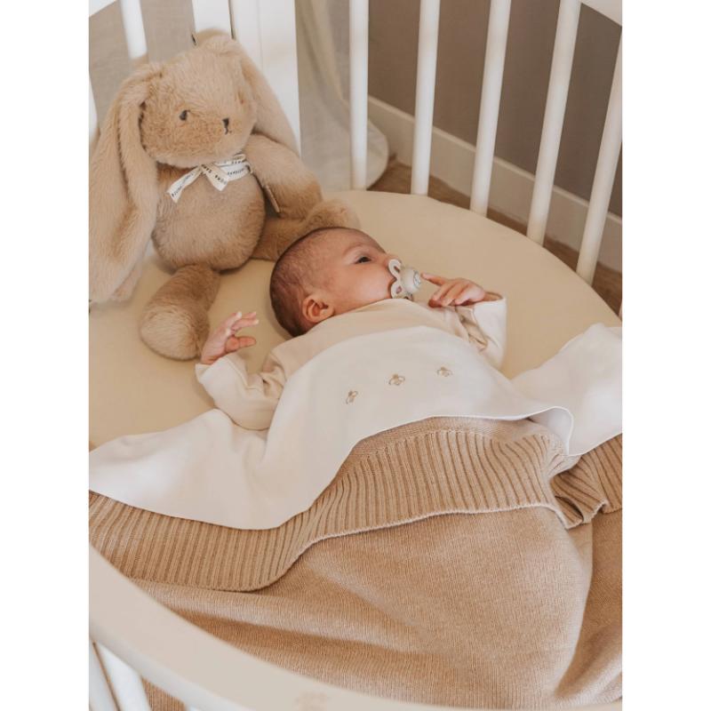 Design Dolce e Neutro: La tonalità sabbia e le lunghe orecchie lo rendono un oggetto bellissimo da vedere e facile da afferrare per le manine del bebè.