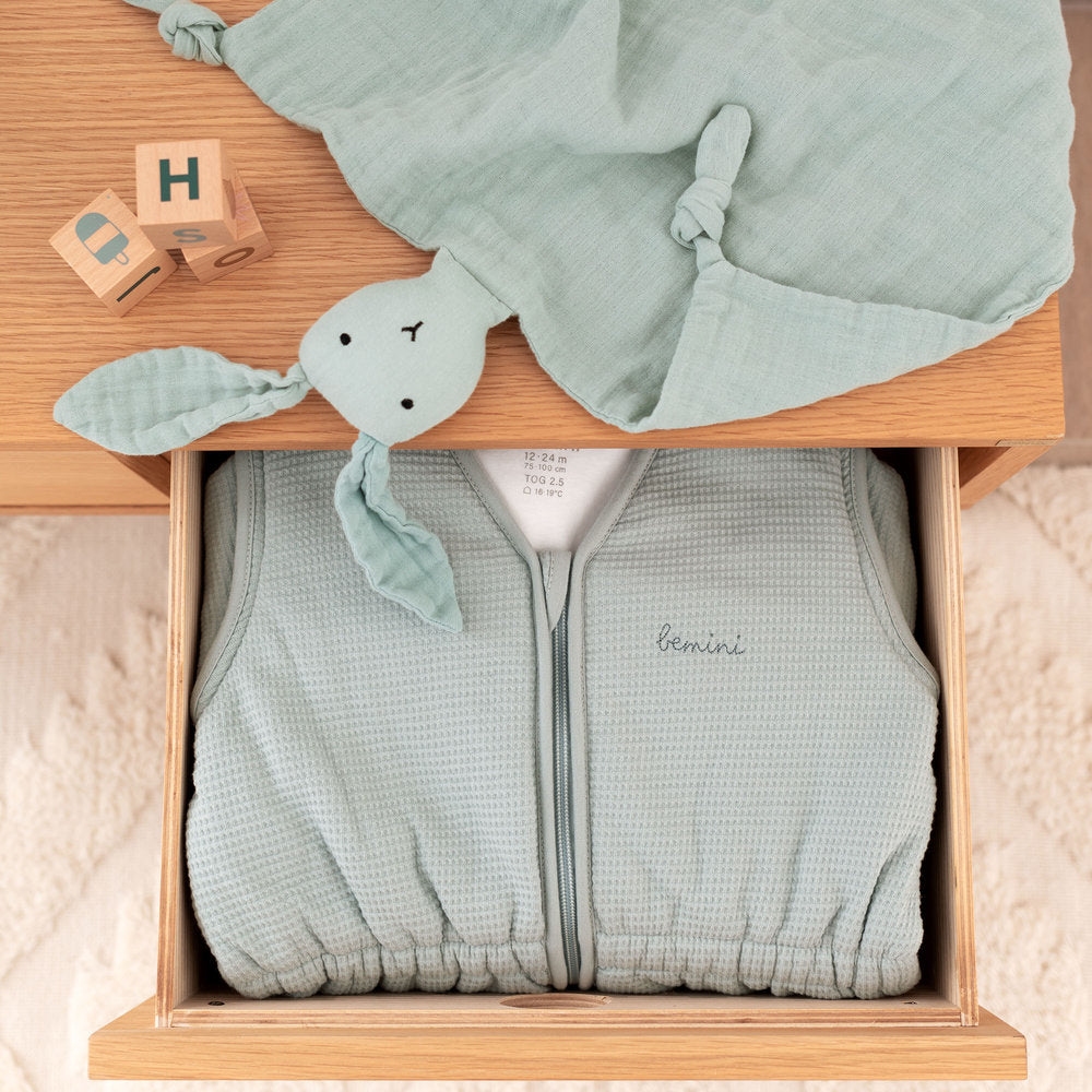 Realizzato con cotone organico foderato internamente con morbido jersey biologico, assicura un riposo caldo e avvolgente. È l'ideale per ambienti con temperatura compresa tra 17° e 20°C.