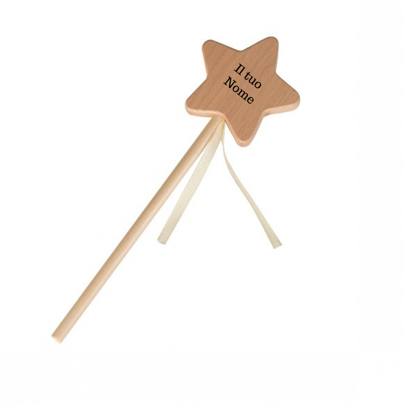 Design Classico: Una bacchetta magica in legno con stella dorata.