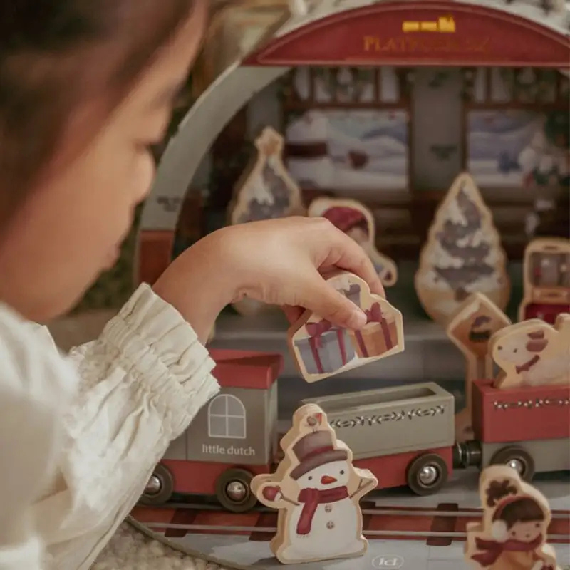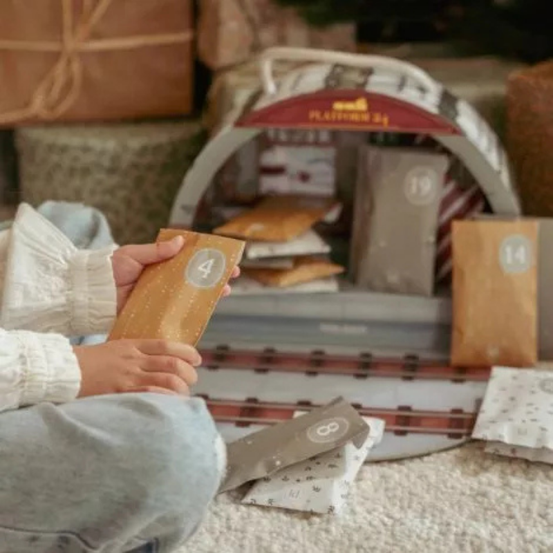 Dimentica i cioccolatini: dietro ogni "busta" troverai un personaggio di legno o un elemento da aggiungere al tuo binario ferroviario natalizio.