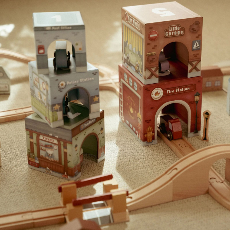 Little Dutch - Torre di cubi impilabili e 6 auto - Essentials
