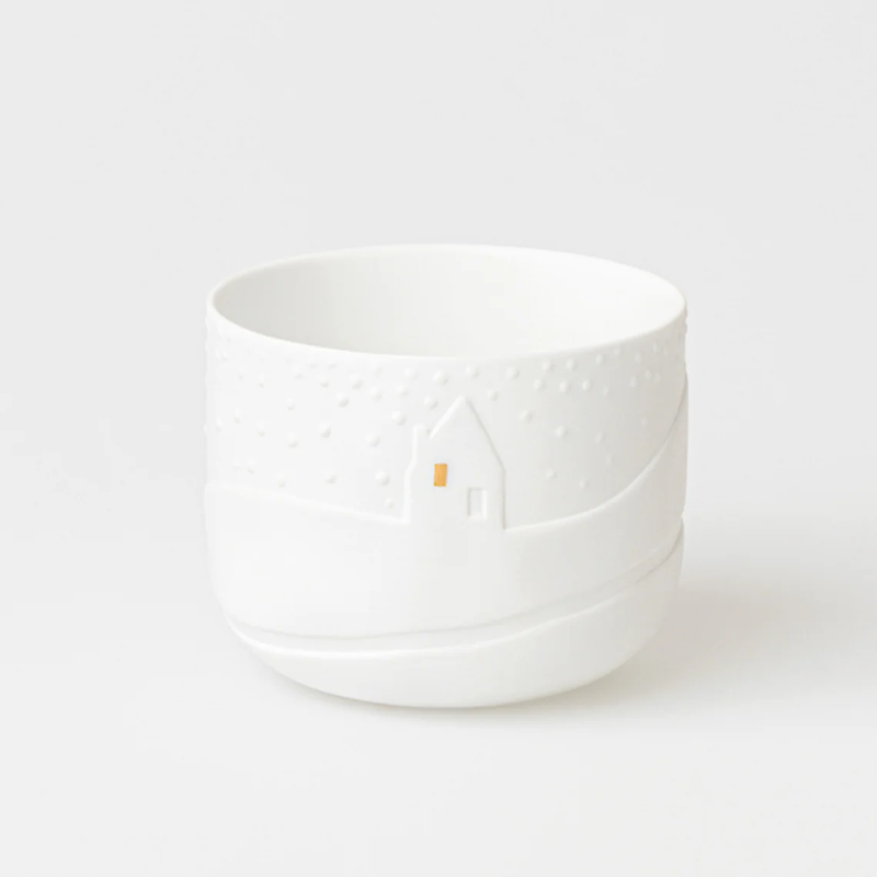Räder - Portacandele in porcellana tealight - Vasetto Paesaggio con Chiesa 6,5x8cm
