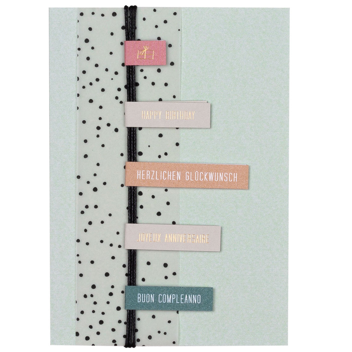 Rendi i tuoi auguri indimenticabili con la "Fähnchenkarte" di Räder. Questo biglietto d'auguri non è solo un semplice messaggio, ma una piccola installazione poetica: presenta una delicata ghirlanda di bandierine in carta applicate a mano, che sembrano festeggiare insieme al destinatario. La scritta "Herzlichen Glückwunsch" (Congratulazioni / Tanti Auguri) lo rende ideale per ogni tipo di celebrazione, dal compleanno al raggiungimento di un obiettivo importante. Realizzato con carta di alta qualità e una cura artigianale per i dettagli, è il biglietto perfetto per chi cerca un modo originale ed elegante per dire "ti penso" in un giorno speciale. Un piccolo capolavoro di design che merita di essere conservato anche dopo la festa.